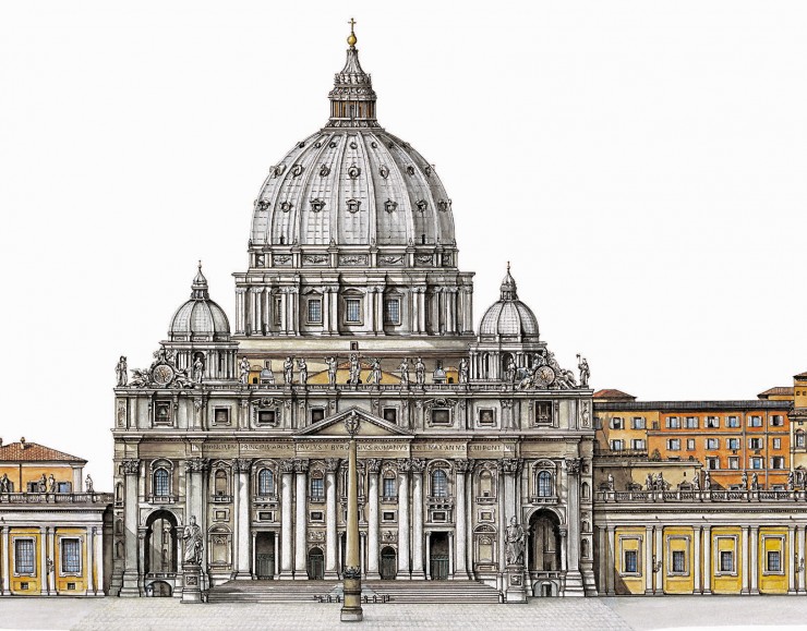 la distanza fra le due torri e l’impostazione della facciata concava per dare più risalto alla cupola. Successivamente gli eredi